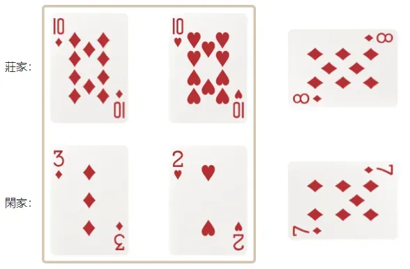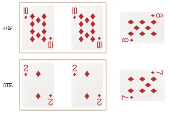 如果莊家和閒家拿到的牌都是6、7不可加牌;閒家點數總計6不可加牌,莊家點數總計7不可加牌。